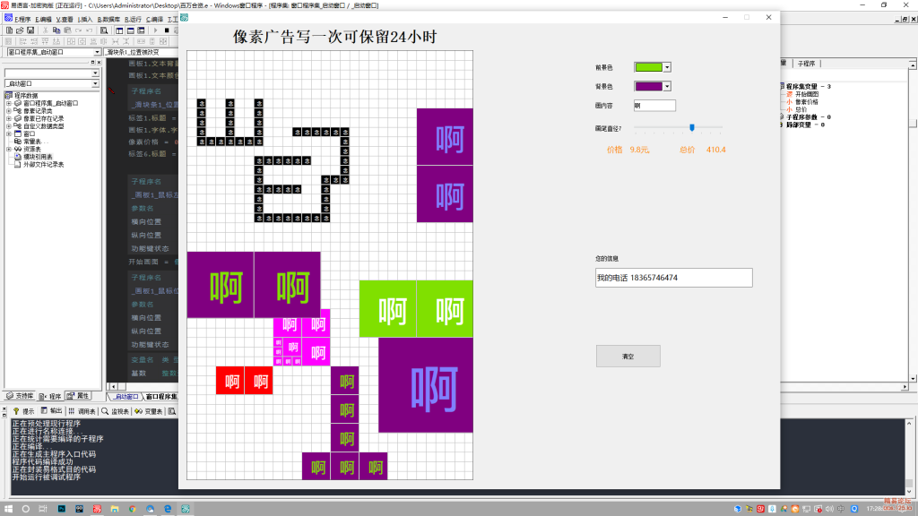 百万格子 – 易语言测试版本 像素格子 广告绘制 演示 画板例程